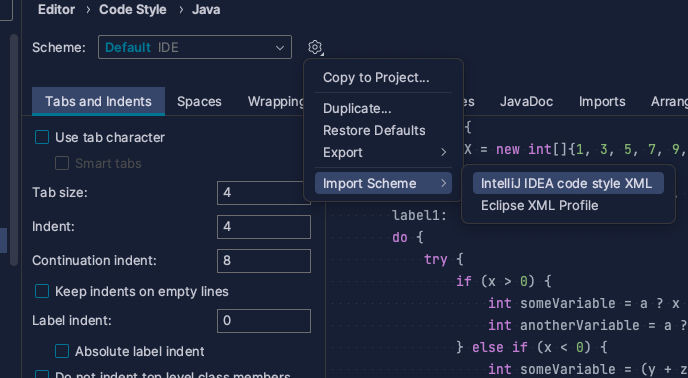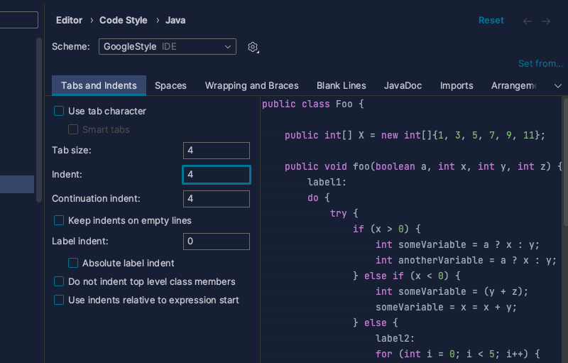 Import Schema로 구글 스타일을 적용한다.(적용하고 Tab, Intent만 2에서 4로 변경했다.)