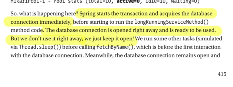 spring.datasource.hikari.auto-commit=false spring.jpa.properties.hibernate.connection.provider_disables_autocommit=true추가) hibernate 5.2 이상을 사용하고 있다면 Repository에 Transactional 선언 없이 CP 획득을 지연시키는 방법도 있다고 한다.
