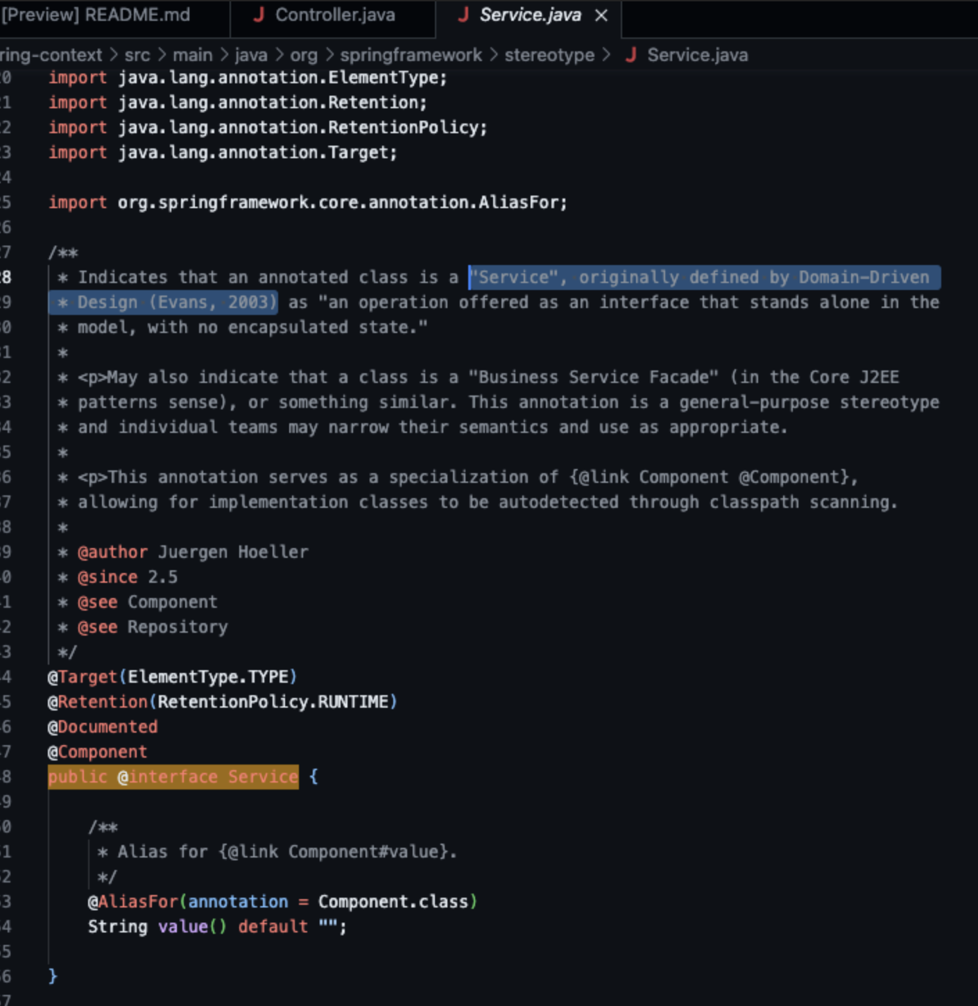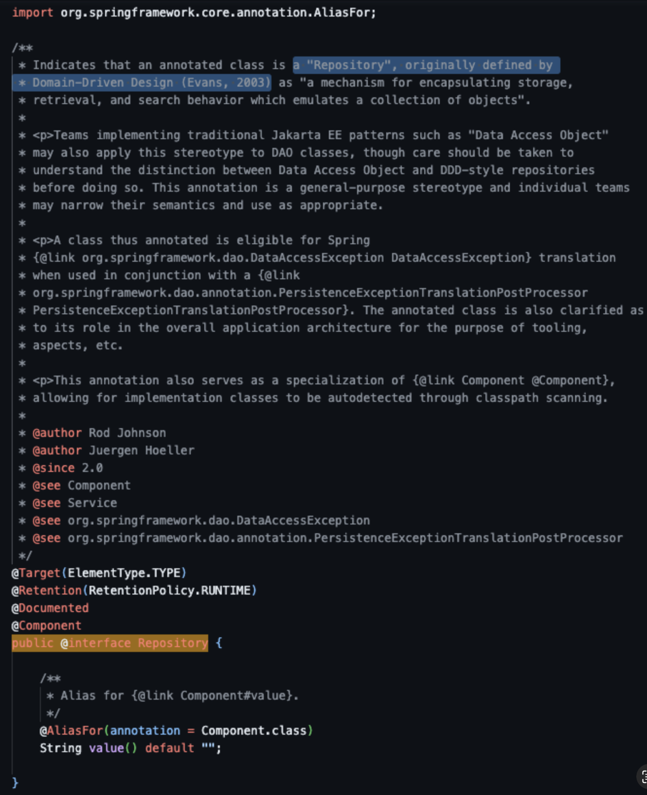- 매일 같이 쓰는 @Service, @Repository 또한 저 파란책에서 나온 개념이라고 한다.