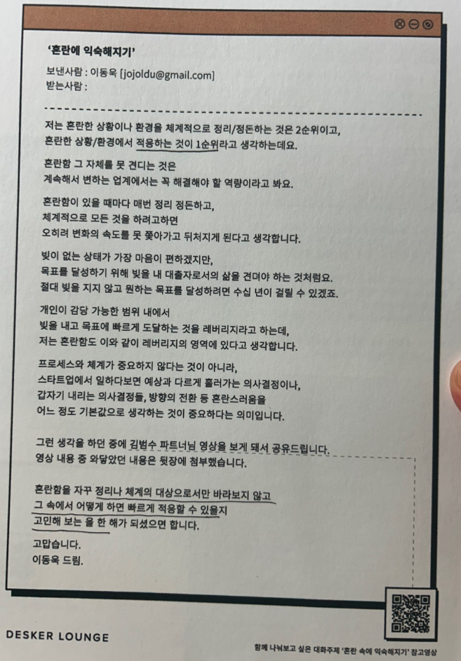 - 데스커에서는 같은 분야의 일하는 사람을 모아서 네트워킹 행사를 운영한다. 인사이트 되었던 내용을 기록해본다.