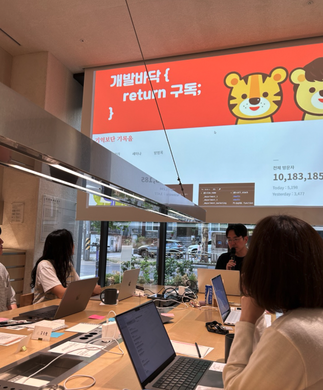 업무 환경 - 이런 활동을 통해서 일면식도 없던 분들과 어떤 환경에서 일하고 있는지 듣고, 교류 했다.