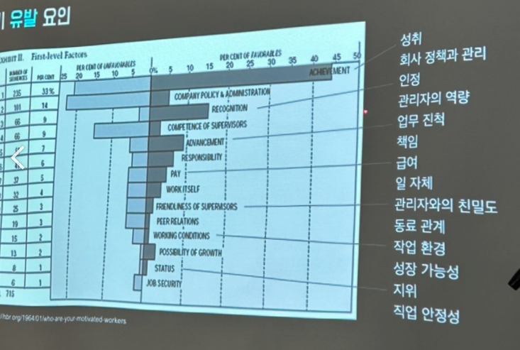 - 급여와 같은 외적동기 보다 내적동기, 개인의 성취, 인정과 같은 요소가 통계적으로 더 높은 동기부여와 만족을 가져온다.