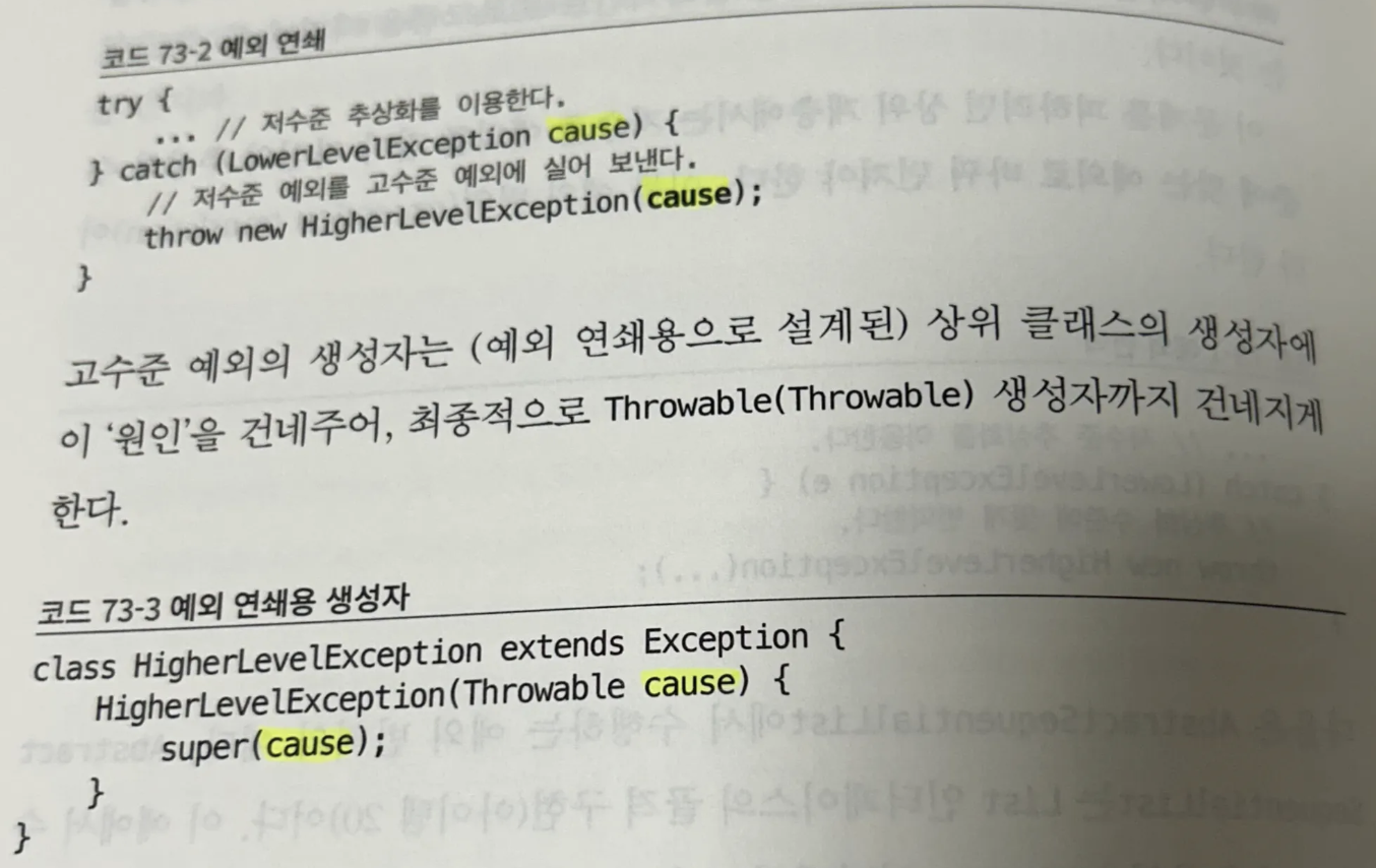 중요한 예외는 재귀적으로 cause를 넘기도록 만든다. 되어있지 않아면 root exception 식별 도움주는 도구를 도입하자.