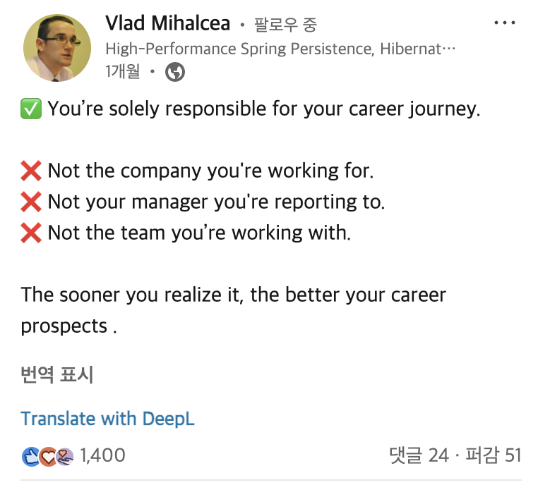 https://www.linkedin.com/posts/vladmihalcea_youre-solely-responsible-for-your-career-activity-7299773699652489217-Lrs5?utm_source=share&utm_medium=member_desktop&rcm=ACoAAByPLboBOS0ea2BdJnl4xvYNJ7fVHEsHlxw