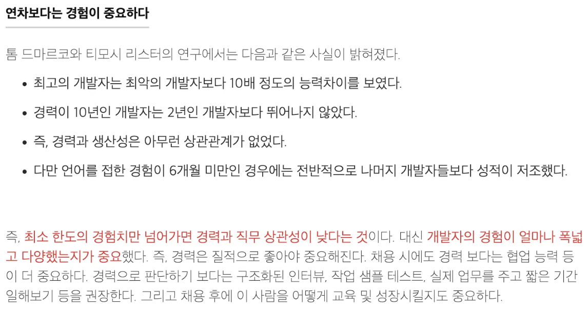 - 그리고 이는 성장과 직결한다. (업무 그 자체의 질)