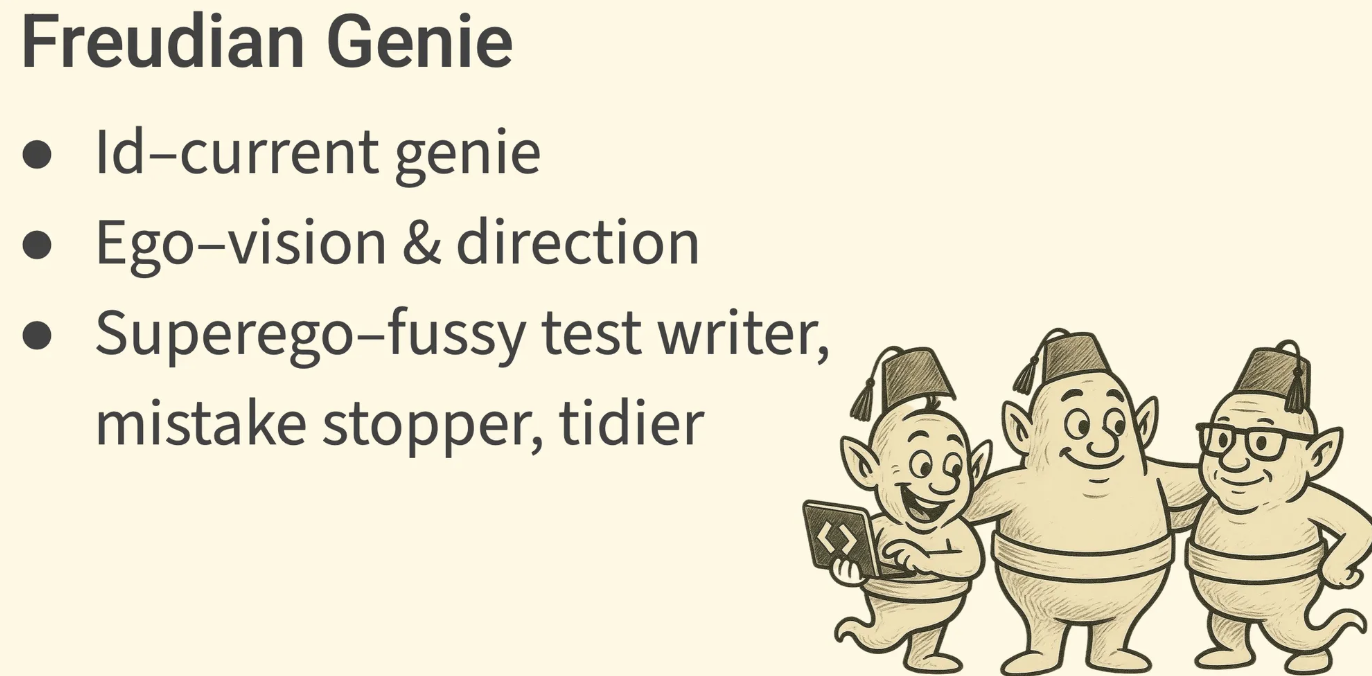 (프로이드 심리학에서 소개된 인간의 정신 구조의 3 요소를 적용해서 각 단계별로 AI 역할, 인간 역할 코딩 접근을 달리 해본다.)
