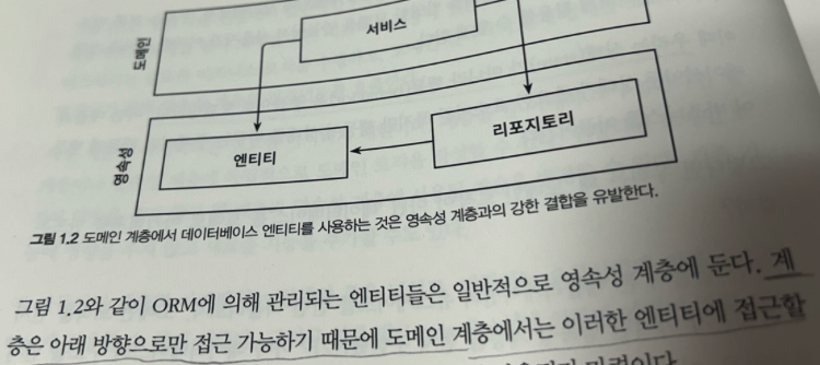 - JPA 같은 ORM을 사용하면, Entity와 Domain이 결합되어 유연성이라는 품질속성을 잃는다.