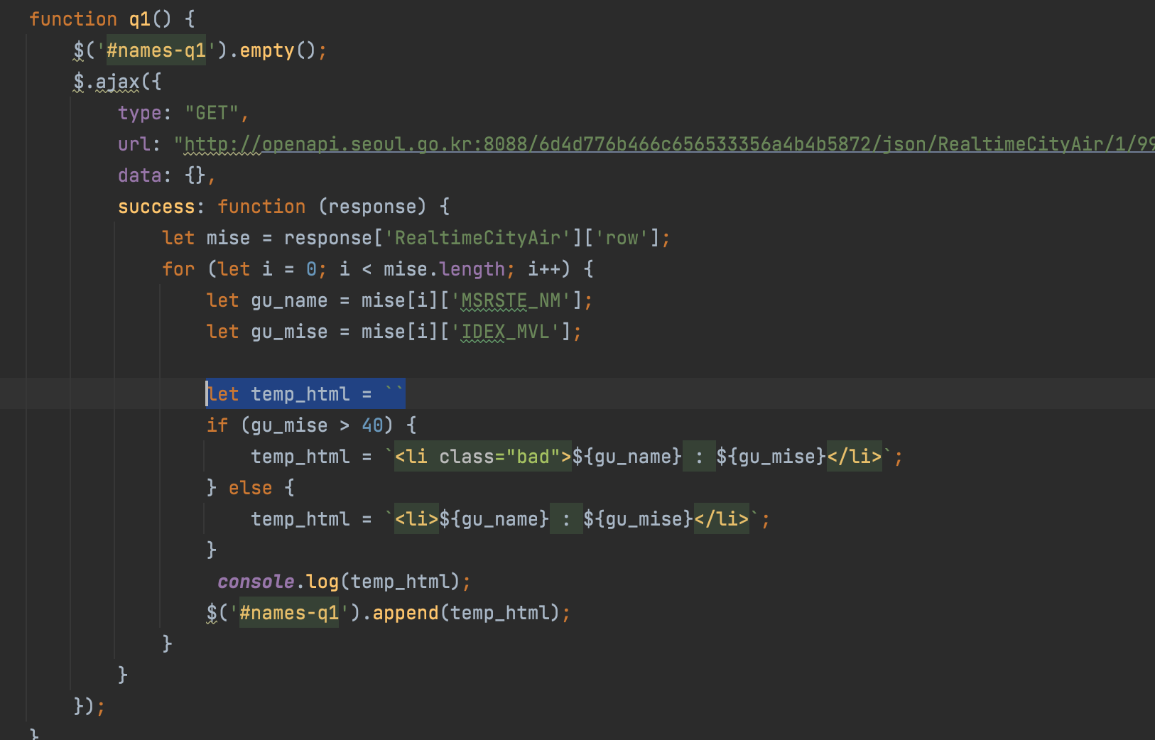 jquery와 ajax를 이용해서 DOM을 조작하고 OpenAPI를 활용하는 것이 주된 내용이었다.