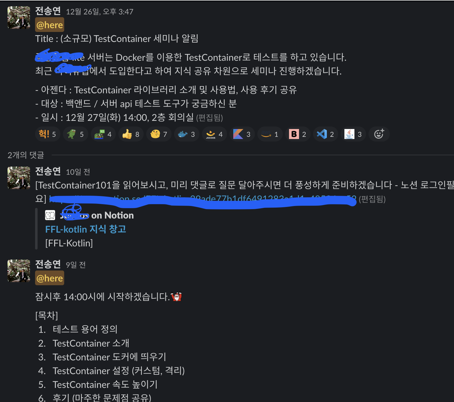 - testcontainers 사용 이유 관련 아티클 : https://medium.com/riiid-teamblog-kr/testcontainer-로-멱등성있는-integration-test-환경-구축하기-4a6287551a31