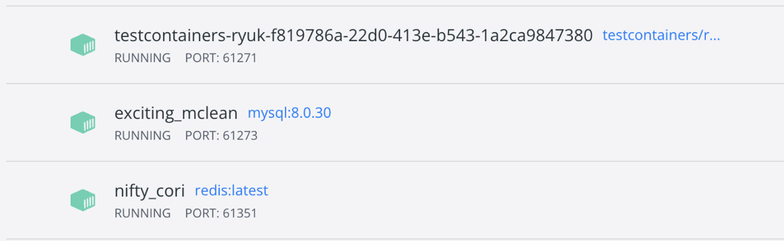 - 테스트를 실행하면 라이브러리가 자동으로 Ryuk라는 Docker Container를 생성, 실행
