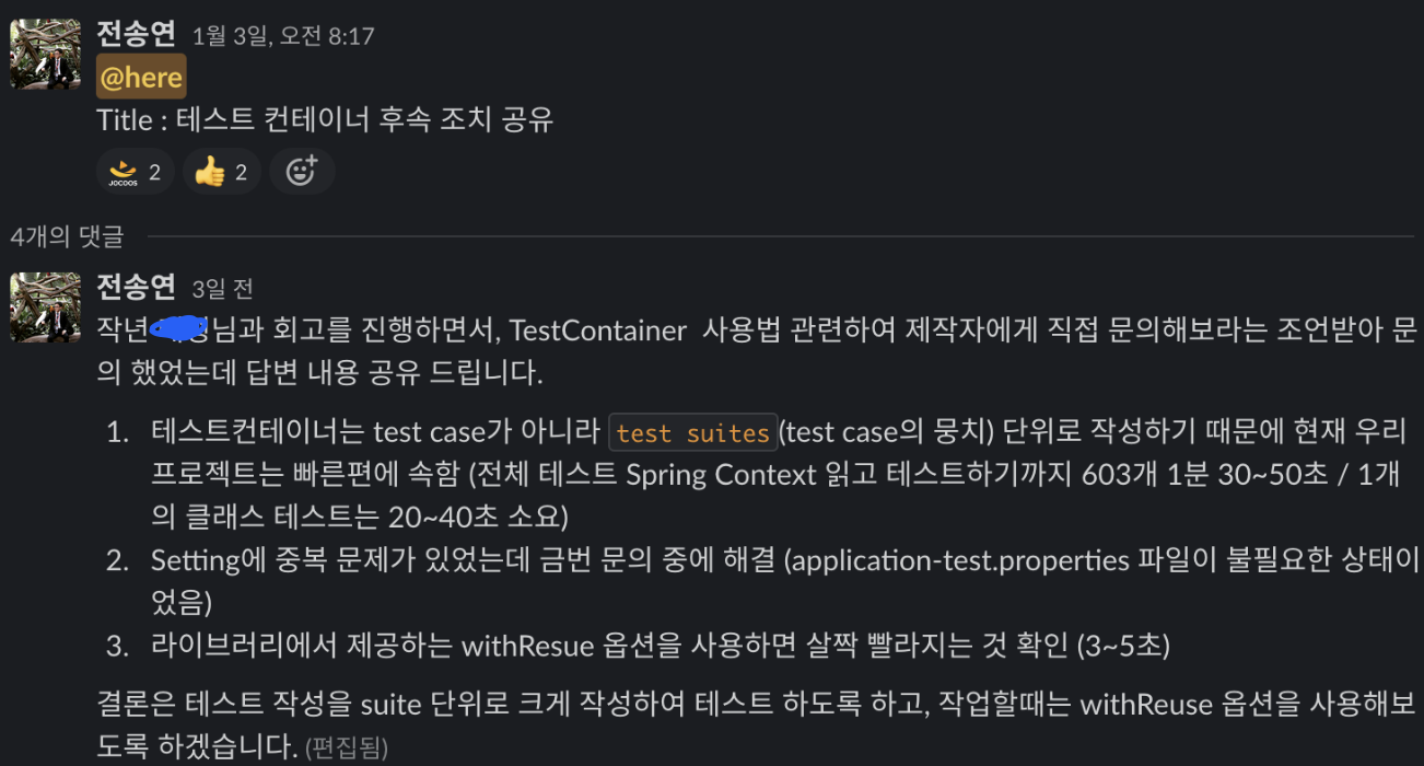 TestContainer 커뮤니티에 직접 사용법을 물어봤다. 3. 🧑🏫 TestContainer