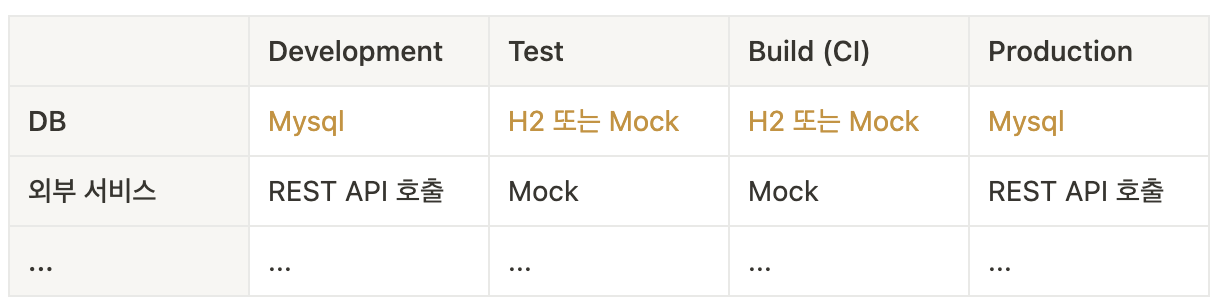- 개발 버전 DB : 통합 테스트용 DB 환경